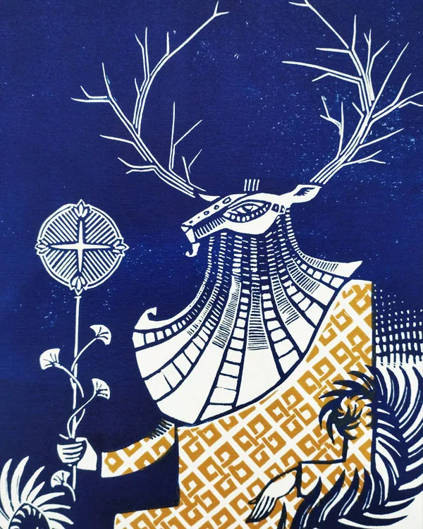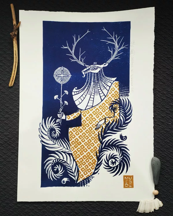 A la linogravure du Dieu Cerf, je joins son Certificat d’Authenticité.