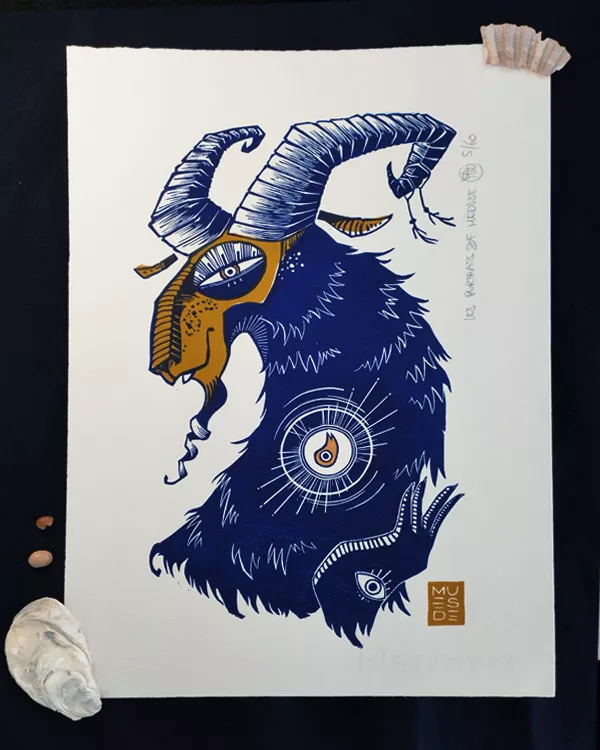 En parallèle de ce processus, j’écris un poème qui accompagne chaque linogravure. C’est en quelque sorte son extrait de naissance. Il est imprimé sur un papier calque et joint à votre impression lors de votre commande.